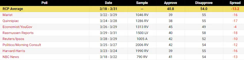 Exactly the same as where Trump was at this point in his presidency.