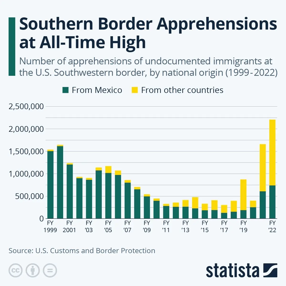 You're not understanding the graphs you cut and paste. Apprehensions have increased under the Vegetable occupying the White House because the message across the globe is that the border is open. Being "apprehended" at the border means the Biden administration and NGO's give away a free phone, cash and free transportation across the US.Texas is responsible for Texas. Note Biden catches the illegals crossing the border Trump did not. So Texas needs to get their shit together.