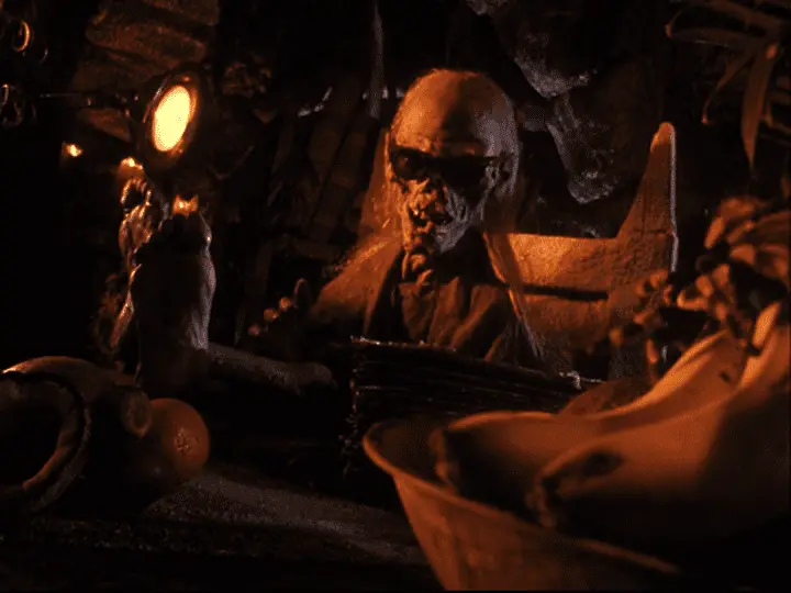 The ugly ancient Crypt Keeper in the back with the sunglasses.