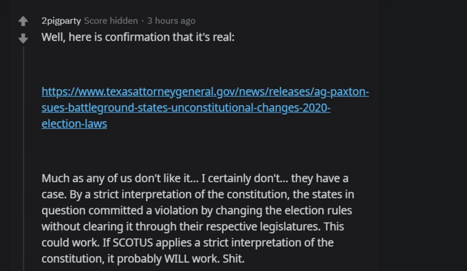 And they did that why..........because they knew it would cause CHAOS......Mail in votes ENSURED THEY CAUSED CHAOS...............Florida had a huge number of mail in ballots, but they began processing them before Election Day. The states that didn't had laws preventing that, and state legislatures refusing to change them. If ballots could have been processed before then on Election Day they would just need to be scanned in. That would have made it a much speedier process imo.