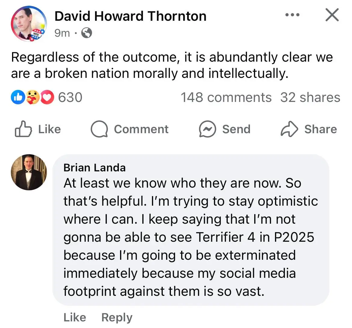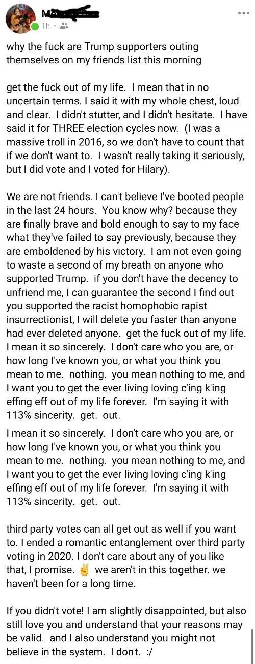 People take their social media much too seriously.Imagine how heavily propagandized you have to be to literally off yourself of sterilize yourself over an election outcome hahahahaha