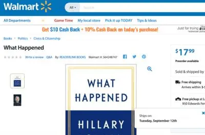 Amazon, Walmart slash Hillary Clinton's 'What Happened' 40% -- before Tuesday release