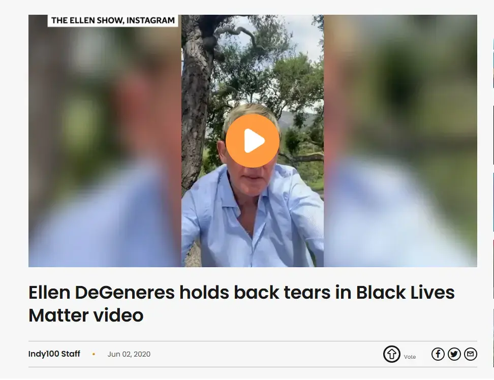 Here's Ellen in all practicality, issuing an apology for some unknown crime she may know about or may have committed: