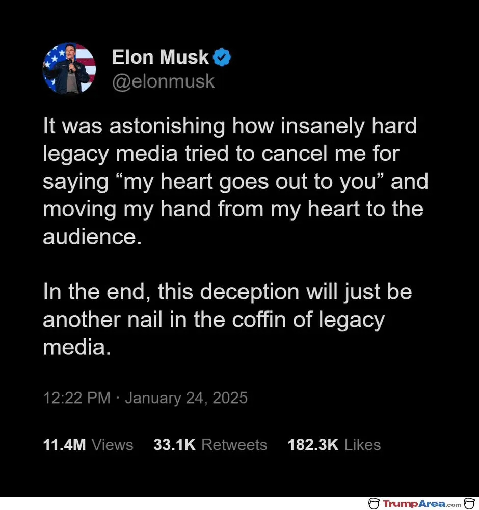 An intentional Nazi, fascist salute, not just him raising his arm to say hi or goodbye. Stop denying the obvious, it makes all of you look dishonest and desperate. Comparing children raising their hands in class or Obama saying hi to the crowd, to Elon's double Nazi salute, is just disingenuous, at best.