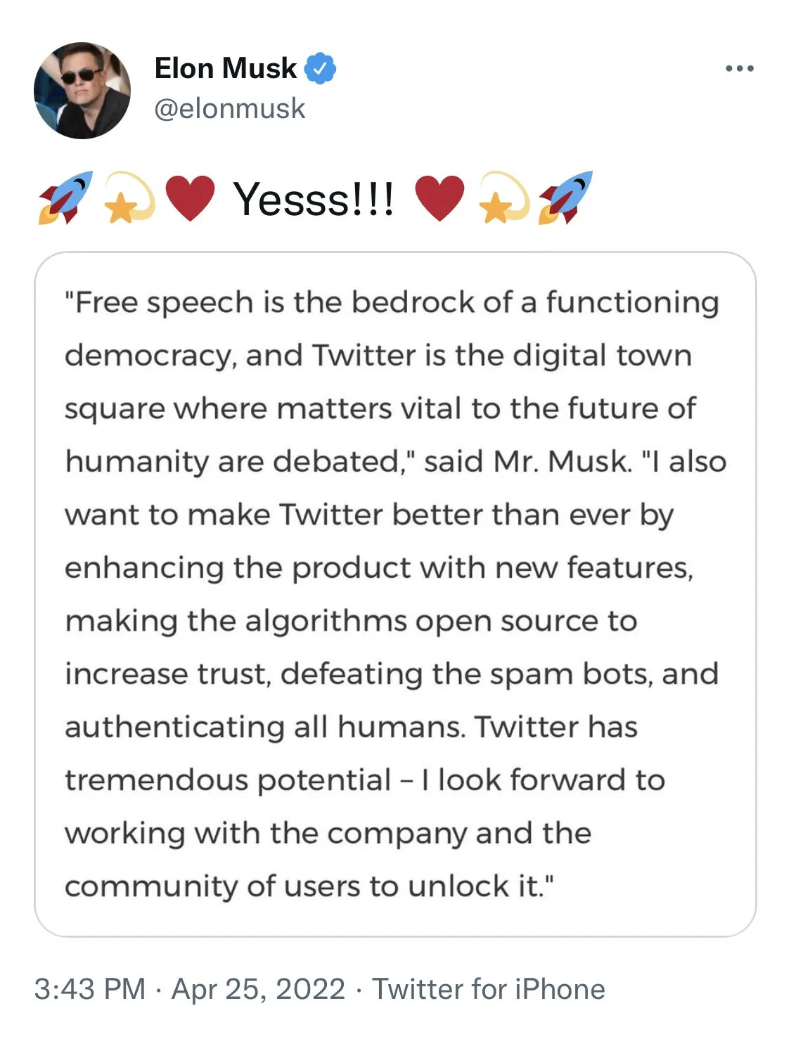 The problem Musk has to solve is the thousands of bots on Twitter. Trump has already said he isn't r back to Twitter.Too bad you’re a ASSHOLE. Twitter believes in “ free speech?” Is that why they allow Terrorist World Leaders to tweet but not Trump? Is that why anyone who didn’t agree with Fauci’s treatment of the Virus ( talking about Physicians) got blocked? Is that why Most Conservatives were eventually blocked?