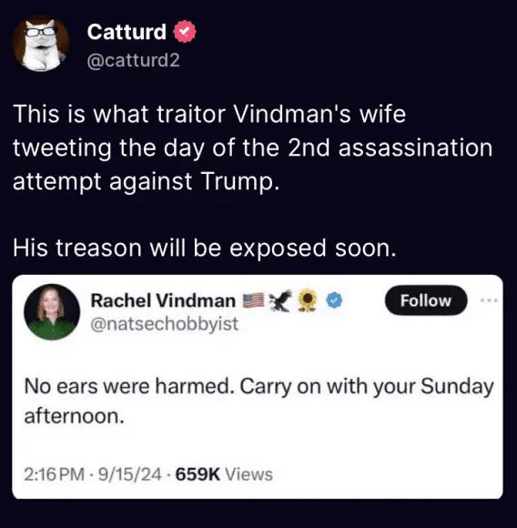 Men whose forte is war do not always see eye to eye with diplomatic peacemakers. But taking the loyal opposition to traitor status is quite a hogwash.First time I saw and heard from Vindman I was shocked that he was in the U.S military. I'm a pretty good judge of character if I see and hear from someone enough and I didn't see a guy I would want beside me in a foxhole.