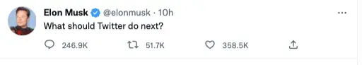 He'd do better running a poll of how many engineers he has left and how long the platform will even remain up!