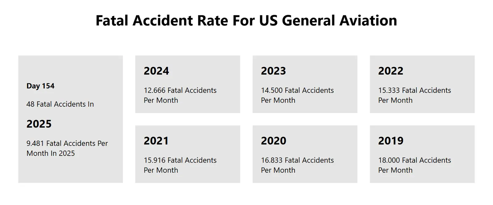 DTSB Accident Data Current general aviation accident data in real time. View Accidents AQP Classifications Fatal Accident Rate For US General Aviation Day 2026data.thedtsb.org