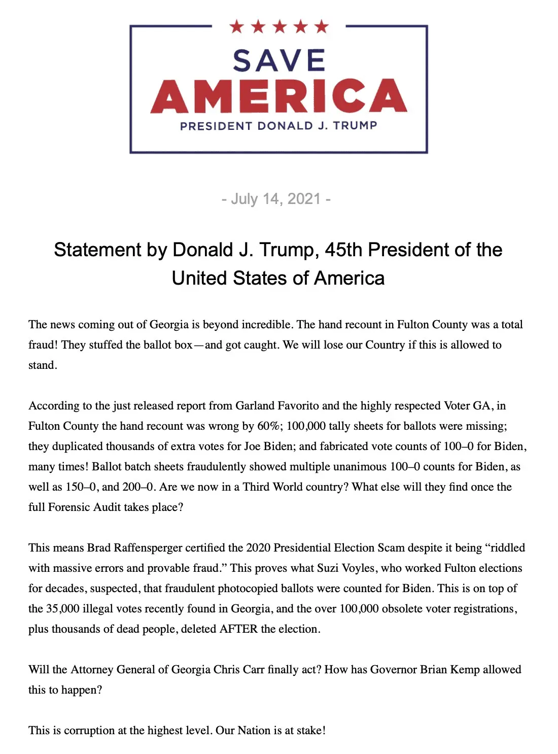Favorito was a Fulton County tabulation observer for the 2020 General Election. He asserts having detected an abnormal 20,000 vote increase for candidate Joe Biden and an “apparent abnormal reduction” in votes for Donald J. Trump.
