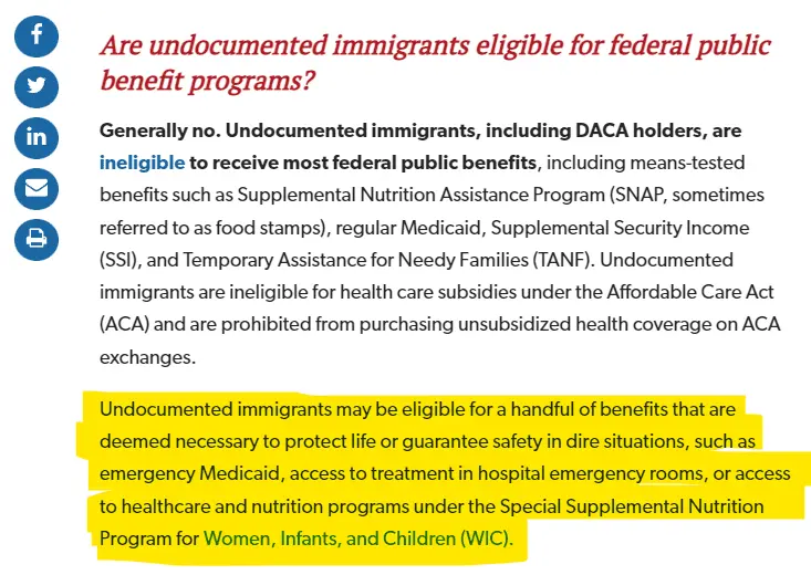 Are undocumented immigrants eligible for federal public benefit programs? Generally no. Undocumented immigrants, including DACA holders, are ineligible to receive most federal public benefits, including means-tested benefits such as Supplemental Nutrition Assistance Program (SNAP, sometimes...