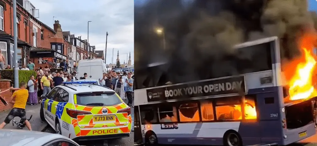 Massive riots broke out in a migrant community located in Leeds, England, on Thursday.