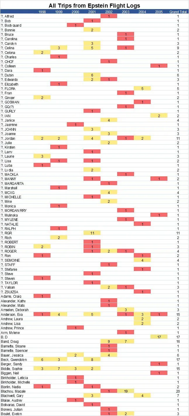 Everyone on Epstein’s Flight Logs
