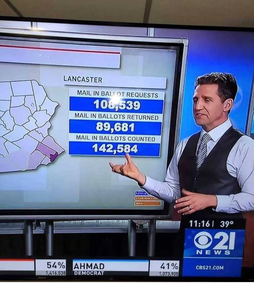 Basing your argument on some rando's screen goof is not how you win....well anything actually.More ballots counted or returned than even existed.