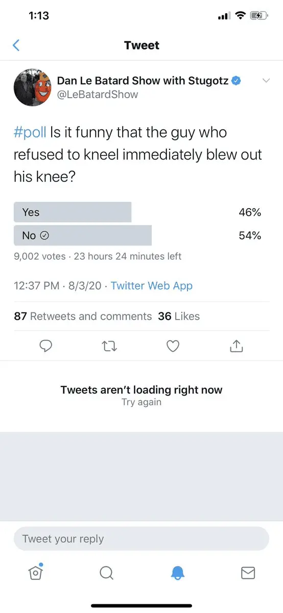 On Sunday, as the Magic played the Sacramento Kings, Isaac suffered a season-ending ACL injury, which prompted ESPN radio host Dan Le Batard to post a poll question asking whether people thought the injury was “funny.”