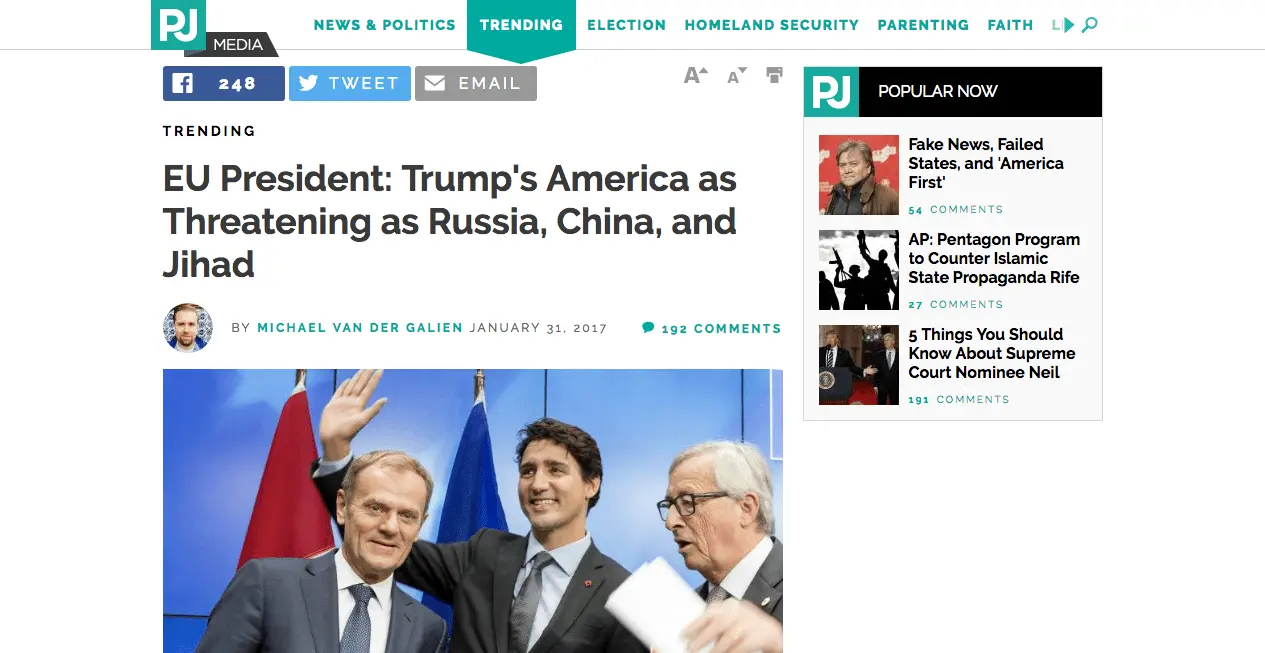 EU President: US Under Trump As Big a Threat As Russia, China and Radical Islam