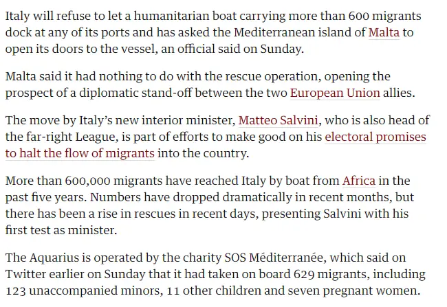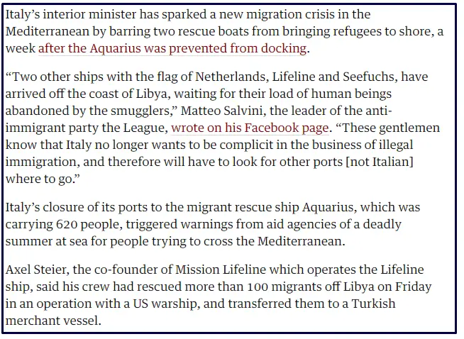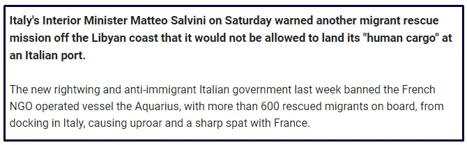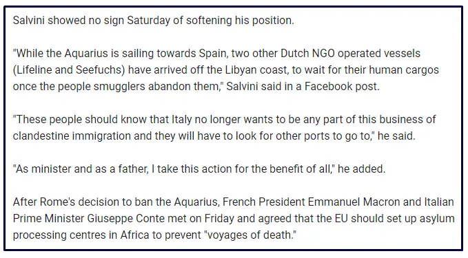 The new Patriotic Government of Italy with the Patriotic Interior Minister Matteo Salvini has now told two more NGO Peoples Trafficking ships to GTFO that Italian Ports are closed to them.