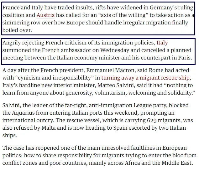 EU migration row boils over as Italy and France trade insults