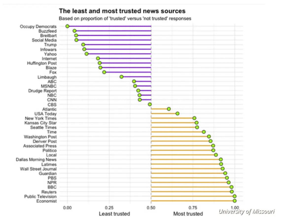 These are the most — and the least — trusted news sources in the U.S.
