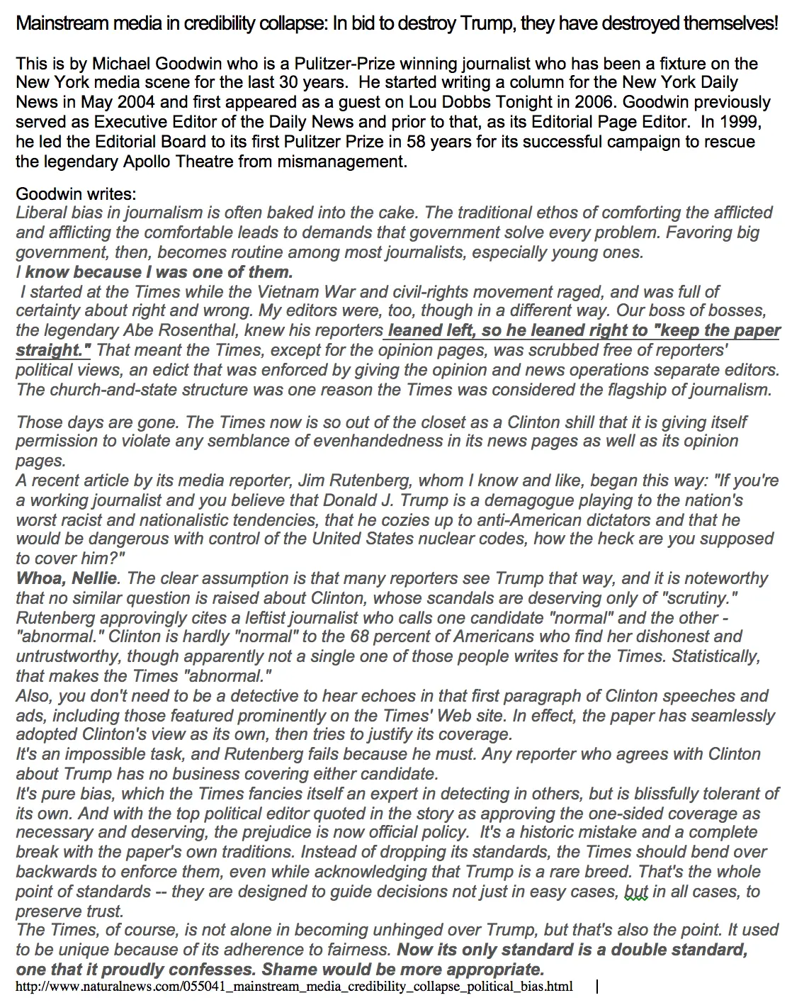 ABC,CBS,NBC, MSNBC,FOX, USA Today Wall Street... and so on then this would be a legitimate