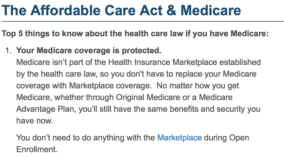 Medicare isn’t part of the Health Insurance Marketplace established by the health care law, so you don't have to replace your Medicare coverage with Marketplace coverage.