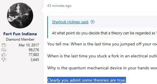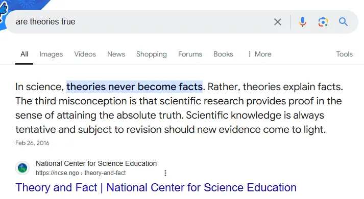 I didn't say you did. I say your actions show you are lying to say you don't accept some theories as true. And I argued it with examples.