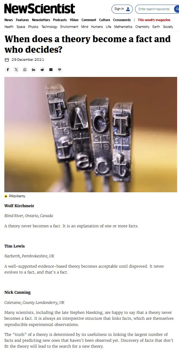 Scientists are rarely unanimous.Scientists most often use the word "fact" to describe an observation. But scientists can also use fact to mean something that has been tested or observed so many times that there is no longer a compelling reason to keep testing or looking for examples. The occurrence of evolution in this sense is a fact. Scientists no longer question whether descent with modification occurred because the evidence supporting the idea is so strong.