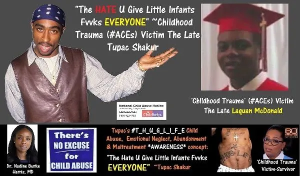 Looking deep I recognize Laquan, Jason Van Dyke and *EVERYONE* witnessing as well as affected by Laquan's death, are among a large and growing population of *EVERYONE(S)* the late 'Childhood Trauma' (#ACEs) and Gun Violence Victim Tupac Shakur speaks about in his often misinterpreted, much ignored T.H.U.G.L.I.F.E. Child Abuse, Emotional Neglect, Abandonment & Maltreatment *AWARENESS-PREVENTION* Public Service Announcement applying to American and foreign born citizens of ALL flavors and backgrounds: