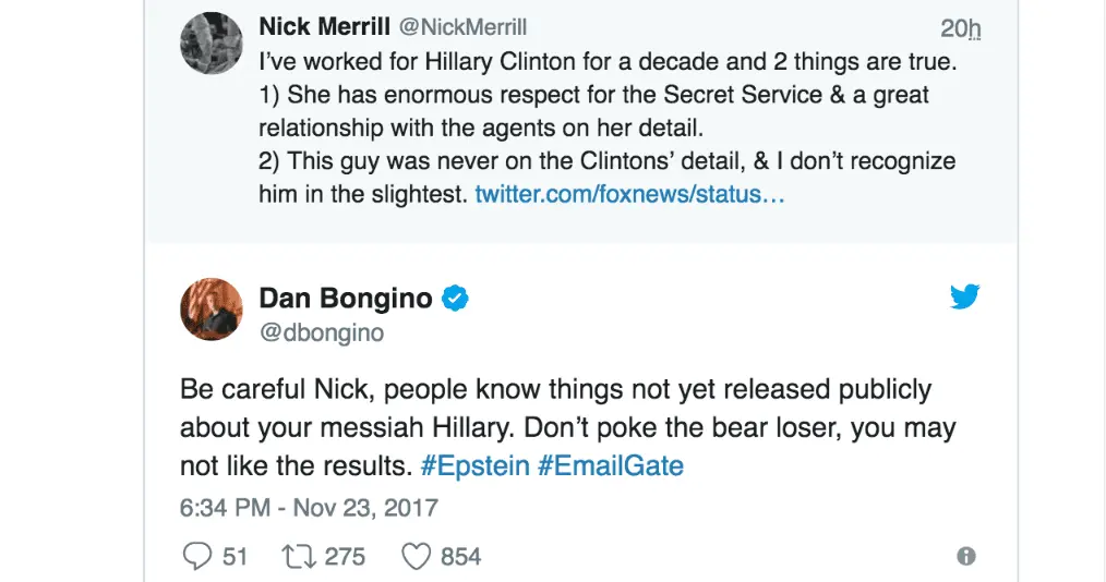 But of course sheep won't go and check out who Dan Bongino really is, who he is, and that is really is a former Secret Service agent . Truth hurts when you have leftist degenerates who still worship these Clinton idiots.