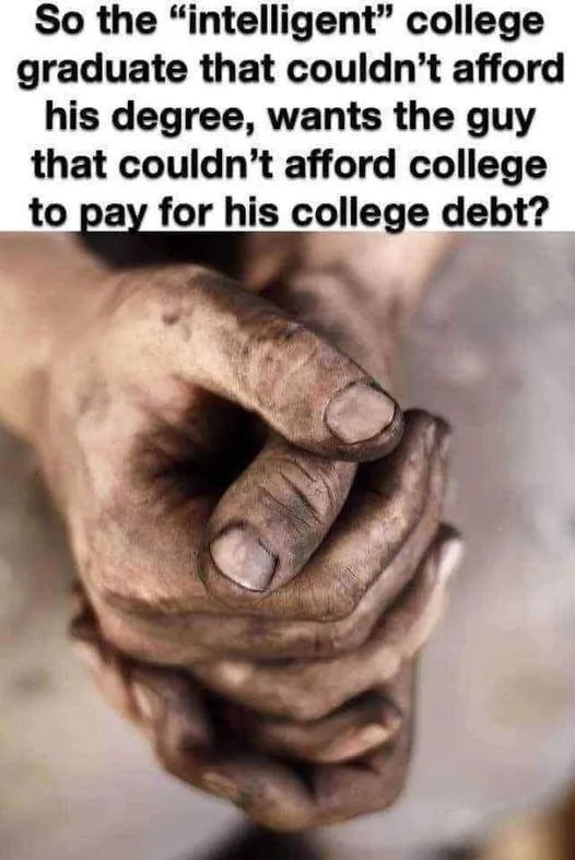 To which I say, Nothing is FREE. If it doesn't come out of their pockets (they are the ones that benefit, after all) then it comes out of someone else's pockets--Yours, mine or some other taxpayer.This discussion would be moot if everyone would just agree that when you commit to borrow AND pay back a sum with interest, you make the decision yourself with no coercion. The fact that after you receive the benefit you choose to default should land your parasite ass in prison or your wages should be garnished. The borrower signed their name and all other parties lived up to their commitments--now it is the borrower who must perform.Guaranteed Student Loans issued before 2011 were from banks. If those are off the table, I'd like to see it in writing.I think this is much ado about nothing. Contracts cannot be undone by EO. Courts can do it if the contract is shown to be invalid or illegal, but they are going to have to find another way. Lenders will not stand for it.![]()