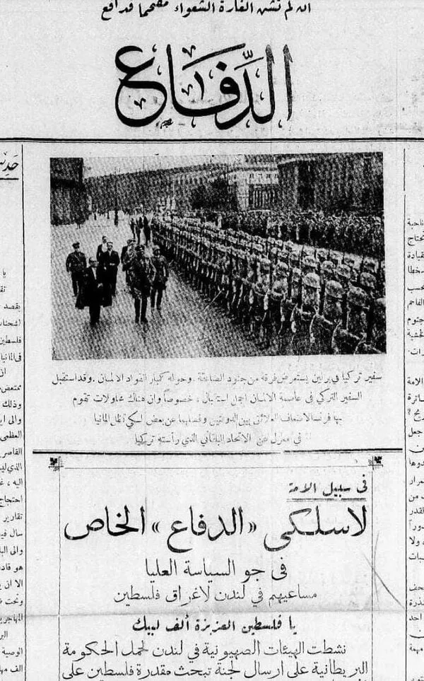 Arab Nationalist movements, campaigning for independence, were growing ever stronger. The fact that Hitler viewed the two occupying countries as enemies won him the Arabs′ sympathy; they saw him as a strong man who could put the hated colonizers in their place. A popular slogan on the streets of Aleppo and Damascus went as follows: