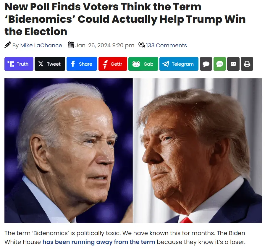 By a margin of 2 to 1, voters say the term "bidenomics" is toxic and hurts the stammering shit clown rather than helping it.