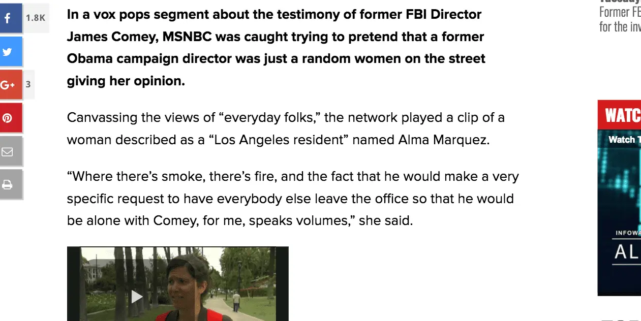 In a vox pops segment about the testimony of former FBI Director James Comey, MSNBC was caught trying to pretend that a former Obama campaign director was just a random women on the street giving her opinion.