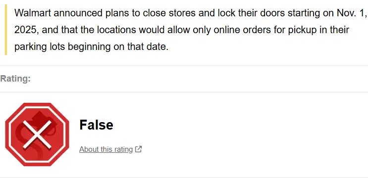 Is Walmart closing and locking doors on Nov. 1, 2025?