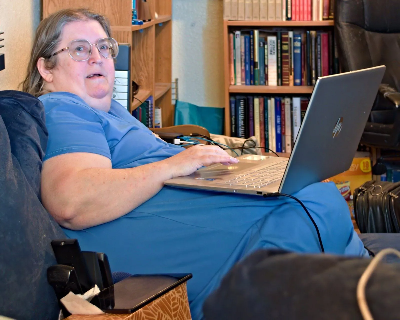 Usually, when I post pictures of my wife anywhere, they are pictures where I have made a significant effort to take them to be flattering, to make her look as good as I can. Here is a rare, honest picture of my, wife, with no such efforts. I took this just now.