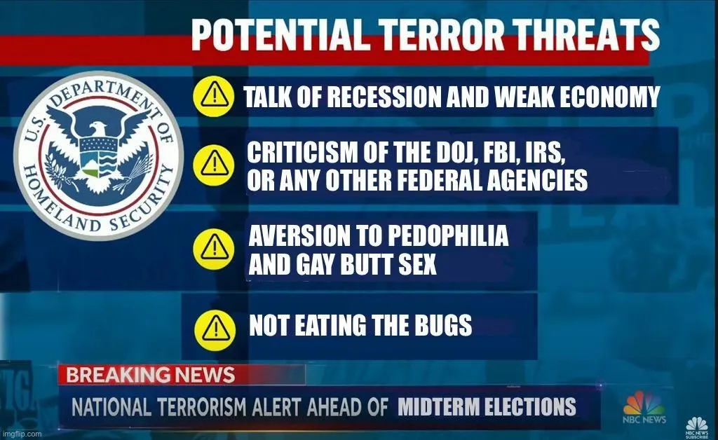 But of course, criticizing Wray's methods and enforcement of tyrannic laws upon Americans should they speak, they instantly become domestic terrorists by the FBI and Garland's DOJ.