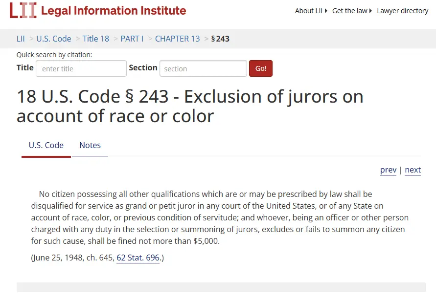 18 U.S. Code § 243 - Exclusion of jurors on account of race or color