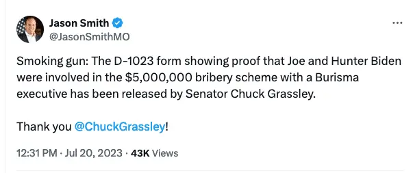 Here's your ilk calling it the 'smoking gun' by House Ways and Means Chair Jason Smith