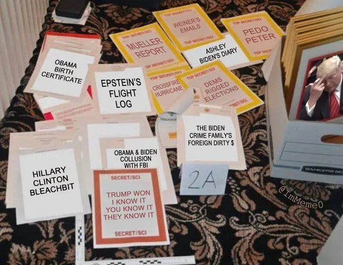 When they opened the box and took pictures on the premises, they tainted everything in that box. Furthermore, it would be easy to bring in a folder of Top Secret or SCI cover sheets and place them over documents and take a picture. That proves NOTHING. The FBI is not only corrupt, they are stupid.