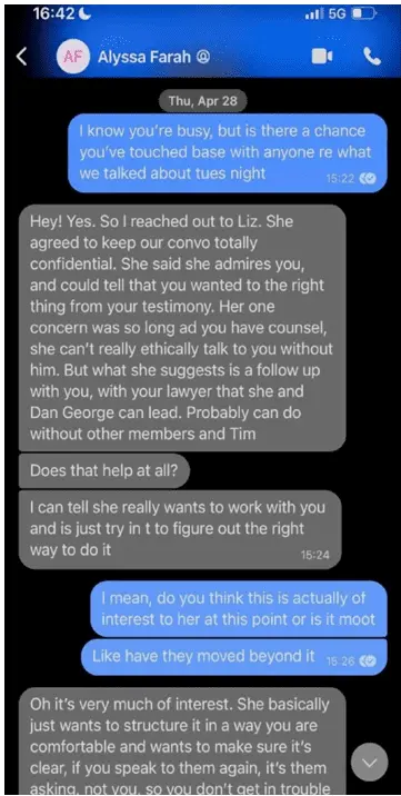 But regardless, it doesn’t matter who reached out to who first, what matters is Liz tampered with the witness and got her to change her testimony