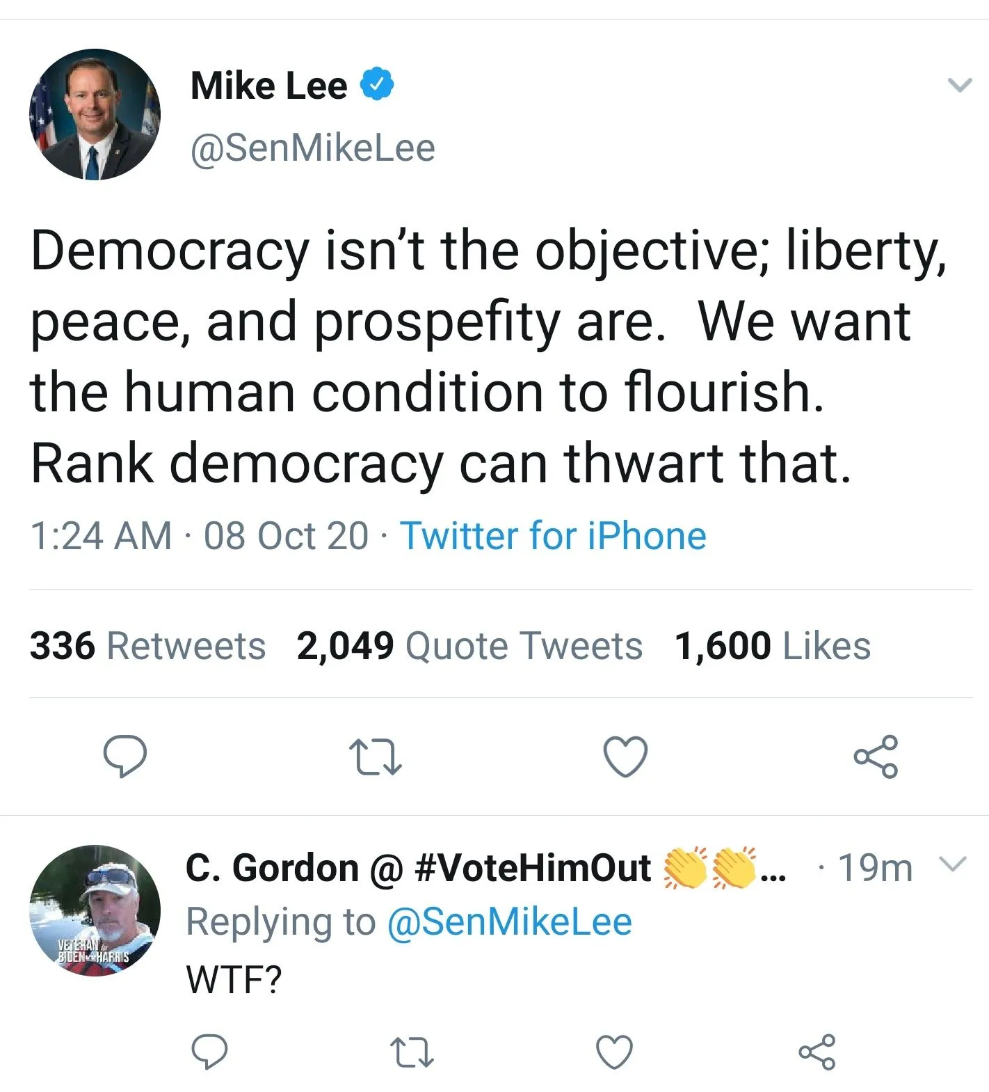 And we also have another elected Senator -- who at one time wanted to be on the Supreme Court -- outwardly attacking democracy.....as most conservatives do....