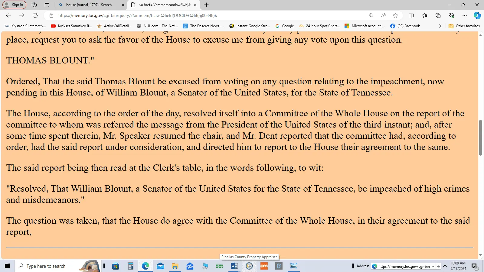 Having said that, let me take this opportunity to lay out the facts concerning the impeachment of Senator William Blount, with links where the facts are established.