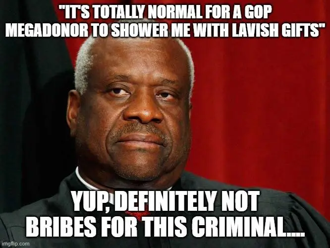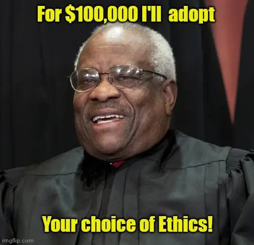 The Supremes are pretty well exempt for codes or laws that prevent them from being bought and paid for. That is stuff that only applies to all others in government office. They wrote their own ethics code, not reviewable and without enforceable penalties. It was not by accident.Plus, and I know I'm not real bright on stuff like this, but the OP refers to (whatever the **** he's referring to) alternately as a 'Code' and a "Law".