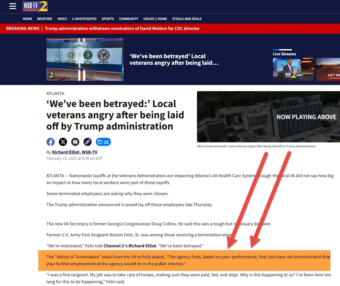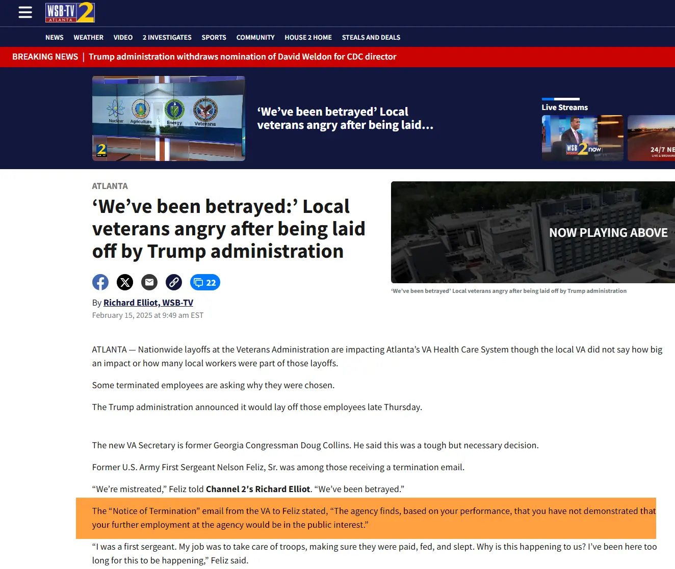 - Fired by Musk because the 12 year VA employee and Army retiree was "probationary"