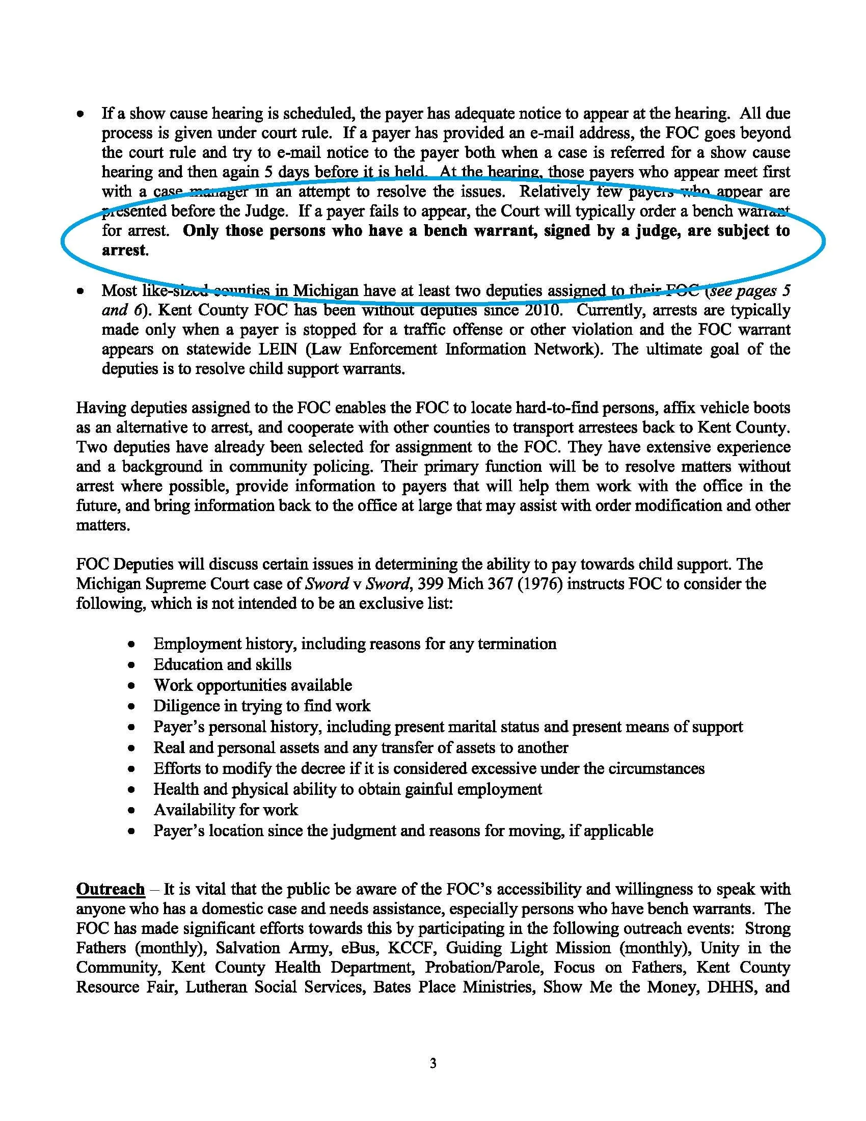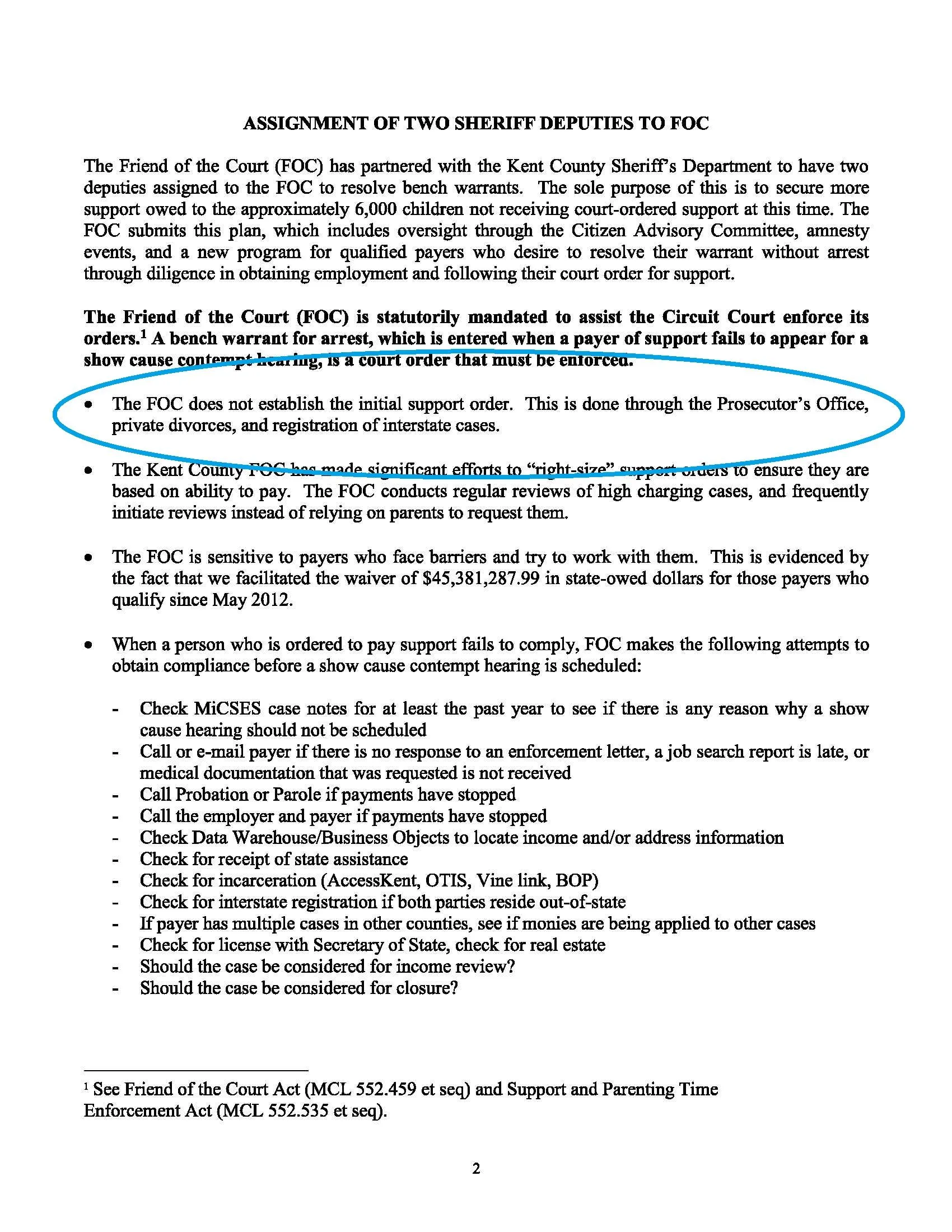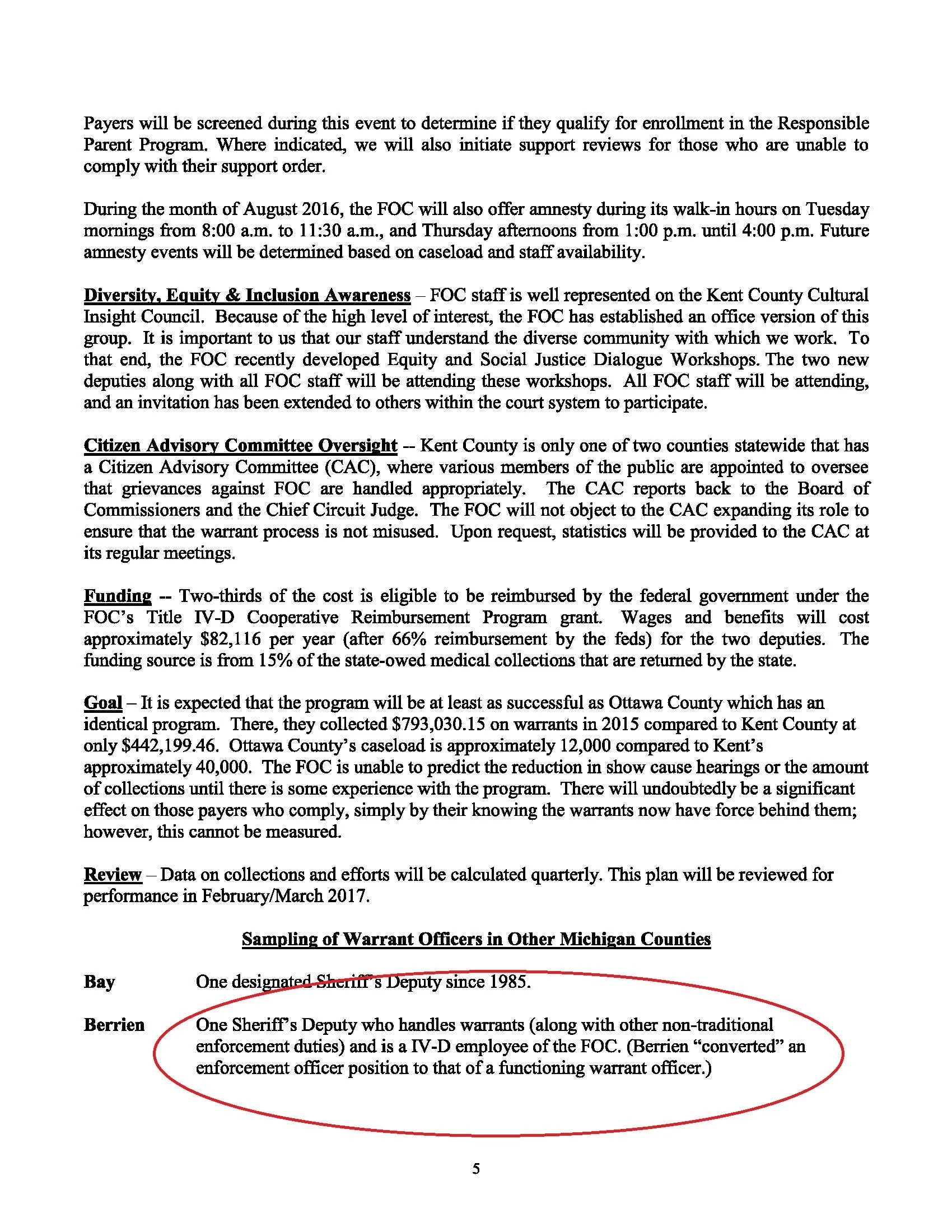 The [Six Pack Joe’s County’s] County Cooperative Agreement brings these three together (The County Municipal Corporation, The Friend of the Court) with the Title IV-D Sheriff Agreements, under (OCSE)-AT-79-3 Federal Financial Participation (FFP) for Making Arrests Pursuant to Appropriate State Process and, OCSE-AT-87-9 Child Support Enforcement Program, 45 CFR 304.22; Michigan Department of Health and Human Services, IV-D MEMORANDUM 2010-003.
