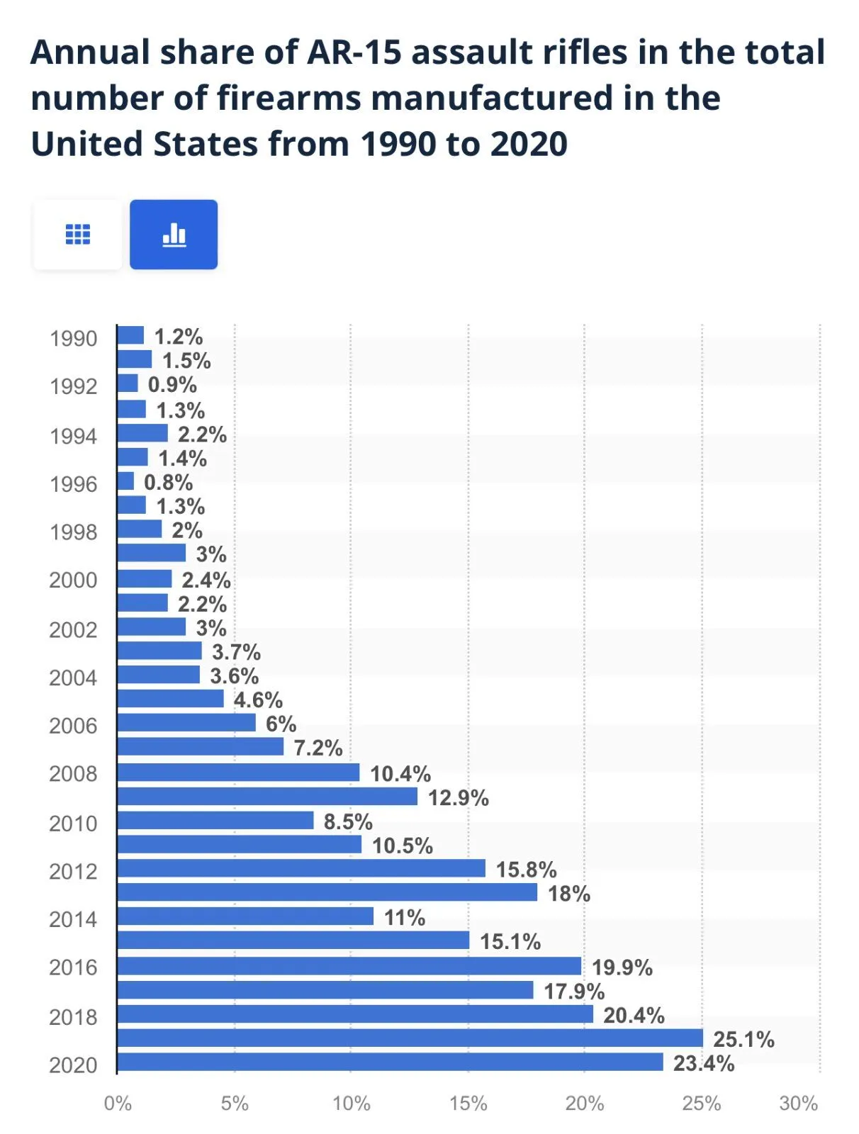 Share of AR-15s in U.S. firearm production 1990-2020 | Statista