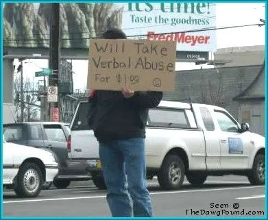 well, since he claims he pays $200 a year for his site, he actually PAYS to BE abused