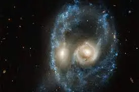 Look here at these two galaxy's which look far into the process of merging. The original shape of each galaxy is lost. Nothing holds it together other then the way mass was distributed when it formed.