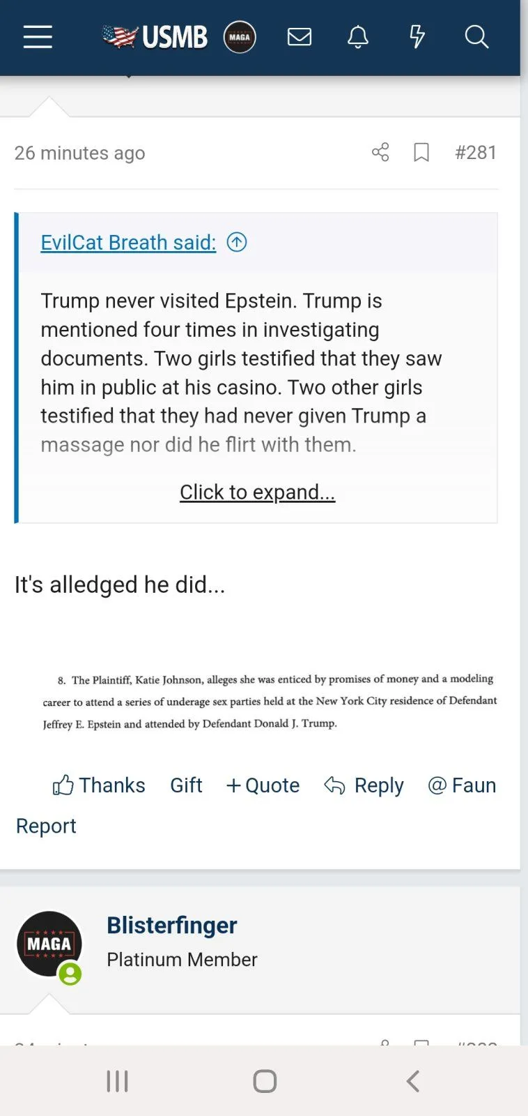 Trump never visited Epstein. Trump is mentioned four times in investigating documents. Two girls testified that they saw him in public at his casino. Two other girls testified that they had never given Trump a massage nor did he flirt with them.