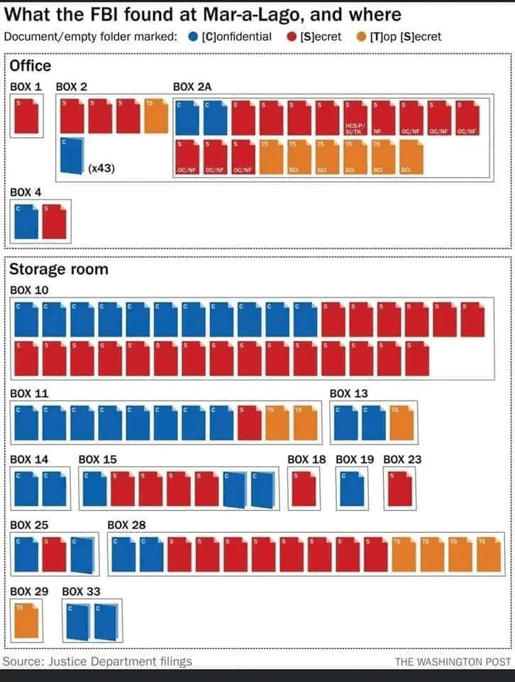 None of that gives him access to just TAKE boxes and boxes full of stuff he isn't warranted to see nor have. Someone is responsible for that stuff! It doesn't just "fall" into a president's hands. And the nature of the bogus leaked media releases by the FBI suggest that there was little or no real basis for the raid, other than POLITICS.