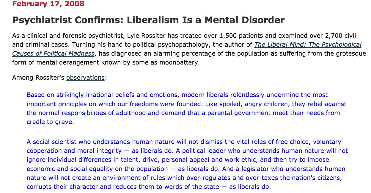 Moonbattery: Psychiatrist Confirms: Liberalism Is a Mental Disorder
